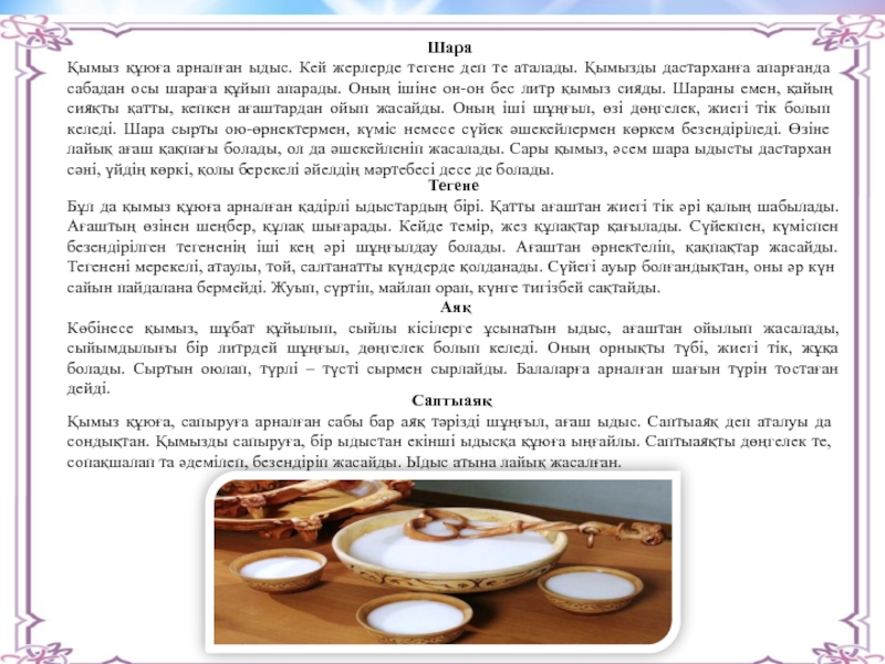 3.4. Қымызды құюға арналған ыдыстар. «Қымыз күткен қазақ ыдысын да
