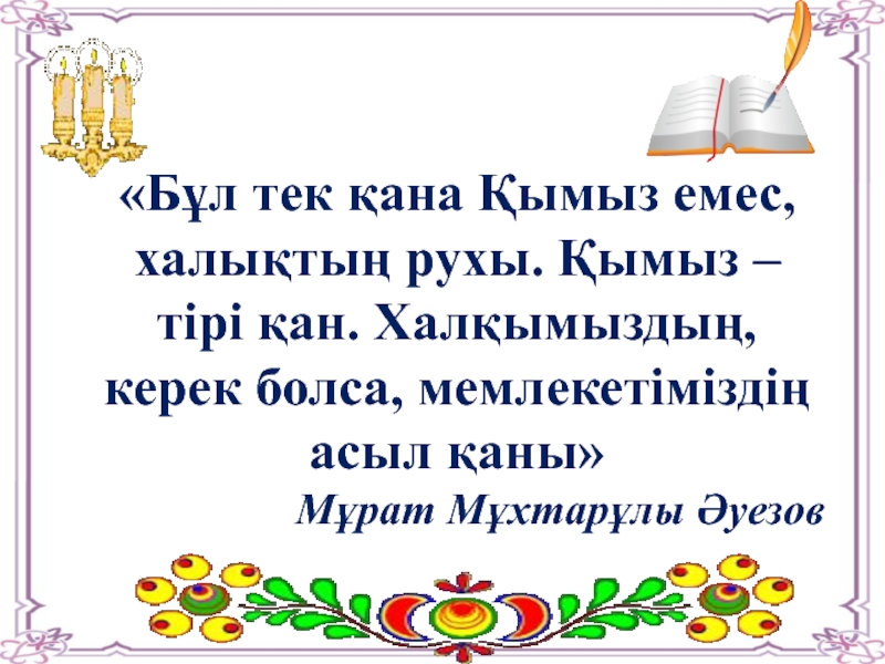 Слайд 3«Бұл тек қана Қымыз емес, халықтың рухы. Қымыз – тірі қан.