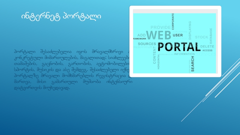 პორტალი შესაძლებელია იყოს მრავალმხრივი ან კონკრეტული მიმართულების, მაგალითად: სიახლეების, თამაშების,
