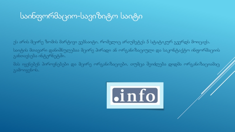 Слайд 4საინფორმაციო-სავიზიტო საიტი