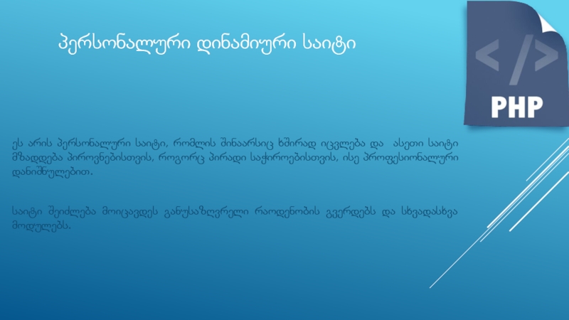 ასეთი საიტი მზადდება პიროვნებისთვის, როგორც პირადი საჭიროებისთვის, ისე პროფესიონალური დანიშნულებით.