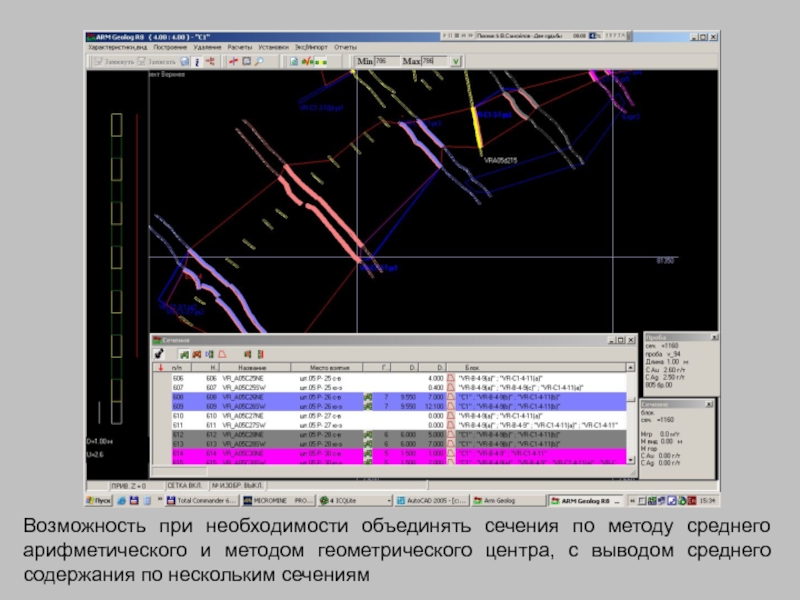 Слайд 15Возможность при необходимости объединять сечения по методу среднего арифметического и методом