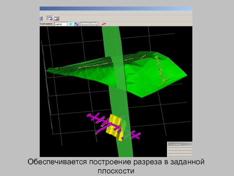 Слайд 12Обеспечивается построение разреза в заданной плоскости