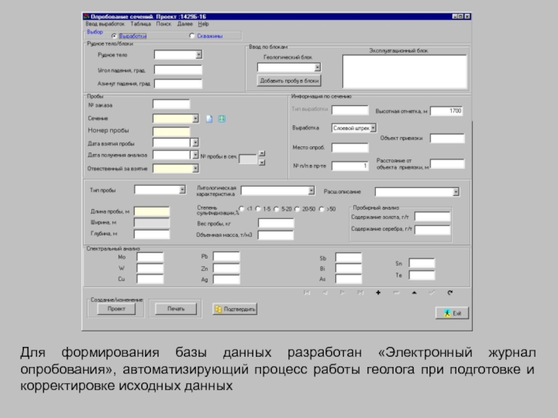 Слайд 5Для формирования базы данных разработан «Электронный журнал опробования», автоматизирующий процесс работы