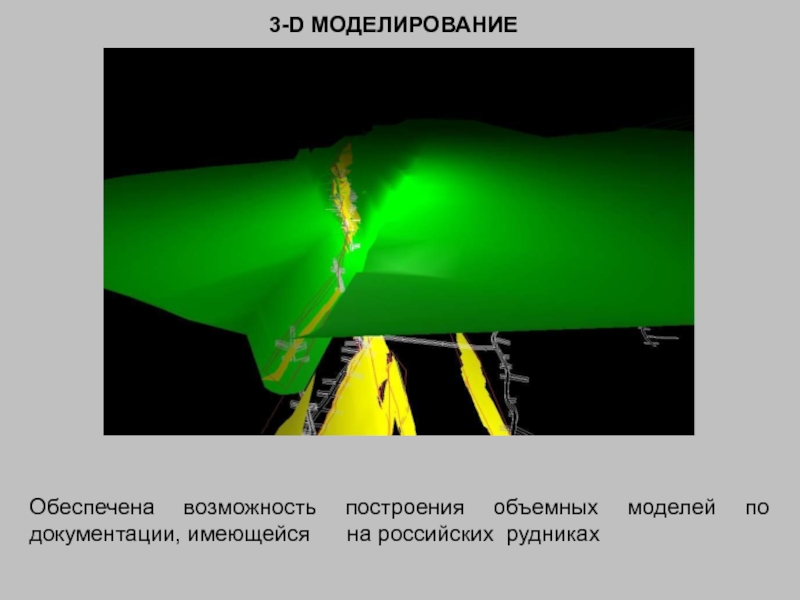 Слайд 11Возможно объемное моделирование рудных тел и горных выработок