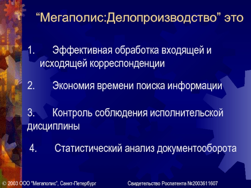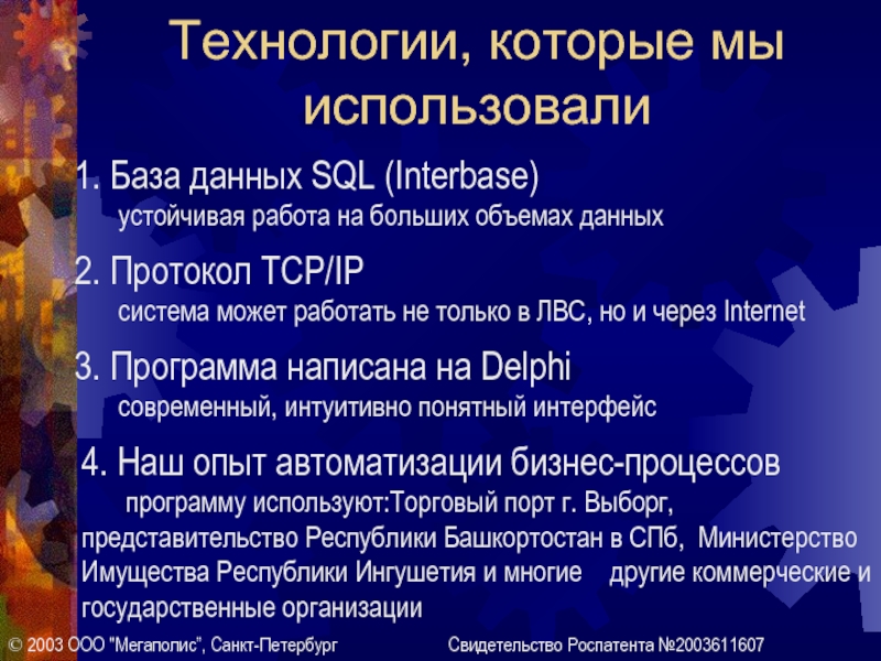 © 2003 ООО "Мегаполис”, Санкт-Петербург Свидетельство Роспатента №2003611607