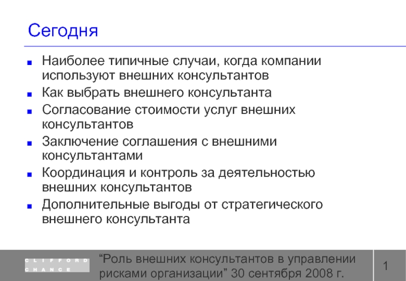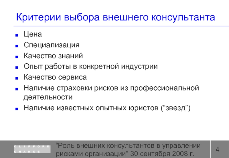 Использование опыта внешних консультантов в определенной области и их осведомленность об изменениях в данной области