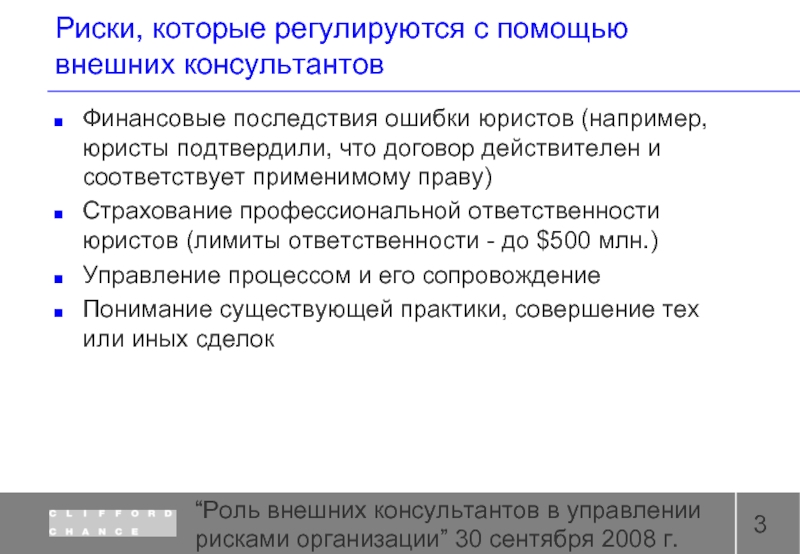 Финансовые последствия ошибки юристов (например, юристы подтвердили, что договор действителен и соответствует применимому праву)