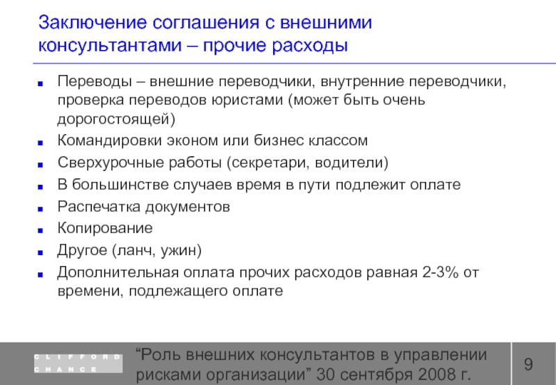 Переводы – внешние переводчики, внутренние переводчики, проверка переводов юристами (может быть очень дорогостоящей)