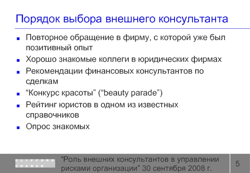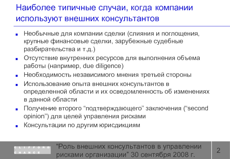 Получение второго “подтверждающего” заключения (“second opinion”) для целей управления рисками
