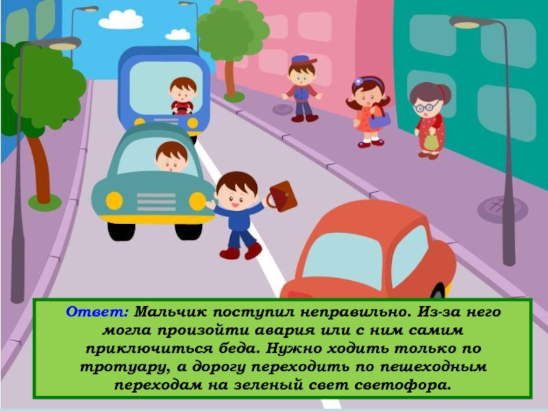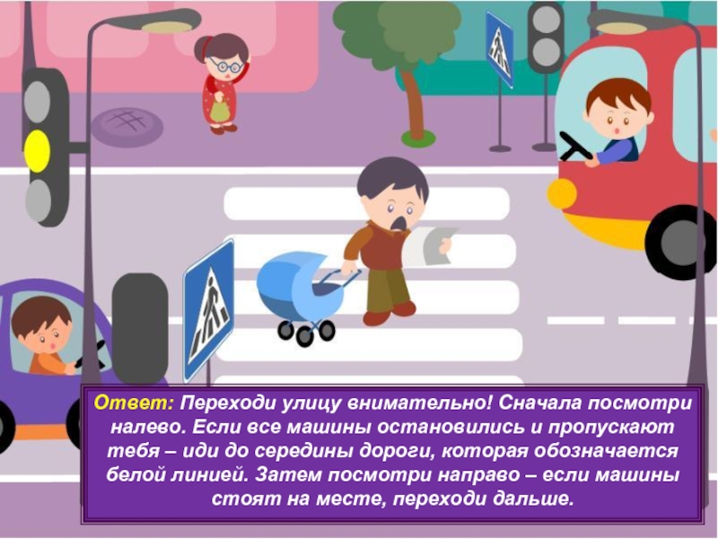 Ответ: Ты собрался переходить улицу и вдруг видишь, что едет машина с включенной мигалкой на крыше. Все уступают ей дорогу, и даже пешеходы стоят на месте и не переходят улицу, хотя горит зеленый свет. Едет специальный транспорт! Его все пропускают: и водители, и пешеходы, потому что он спешит на помощь к тем, кто попал в беду.