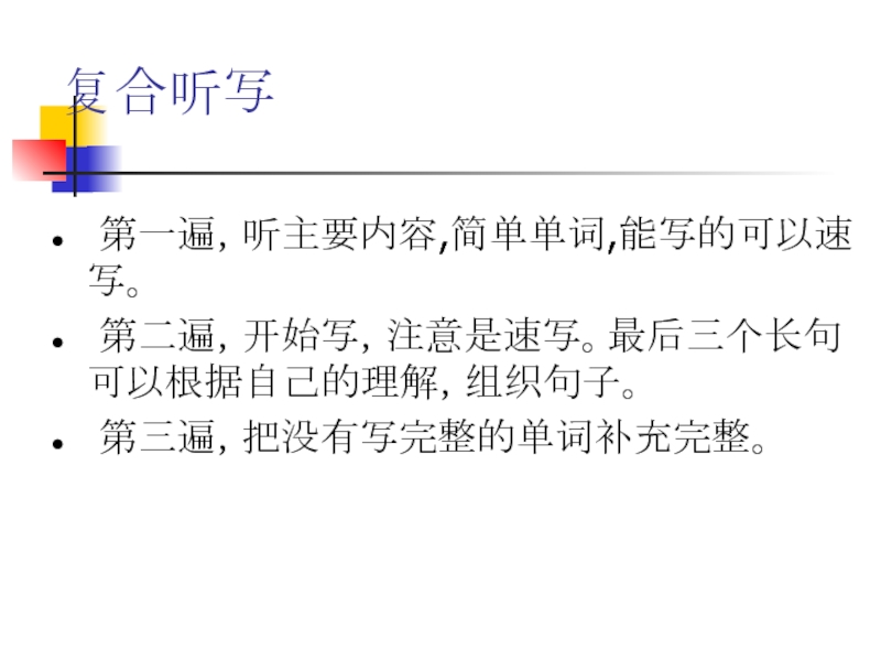 第二遍,开始写,注意是速写。最后三个长句可以根据自己的理解,组织句子。