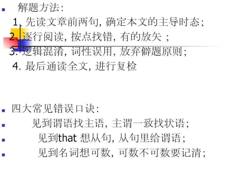 Слайд 46改错:主谓一致、时态、上下文逻辑的考察