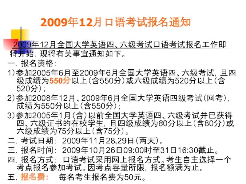 2009年12月全国大学英语四、六级考试口语考试报名工作即
