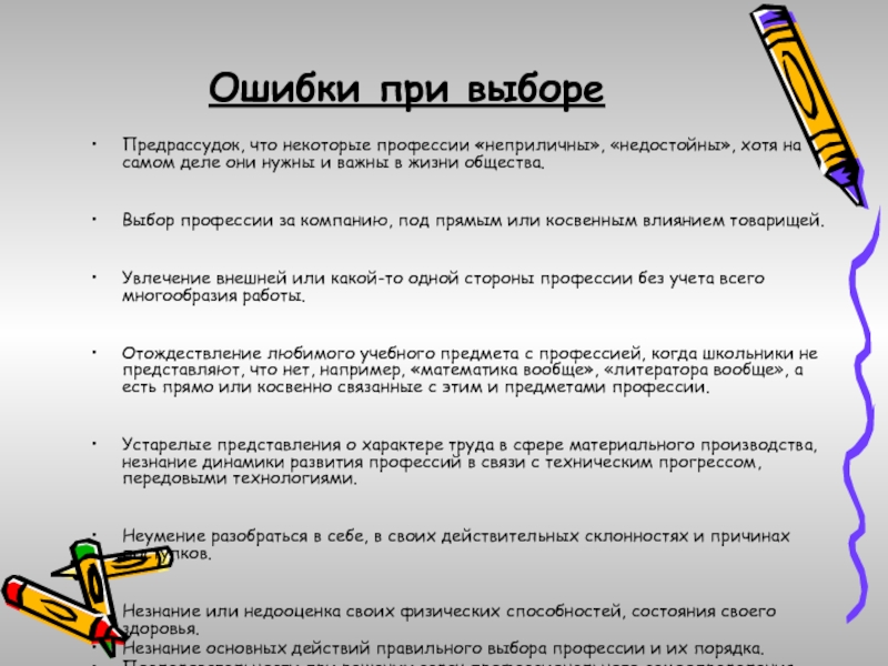 Устарелые представления о характере труда в сфере материального производства, незнание динамики развития профессий в связи с техническим прогрессом, передовыми технологиями.