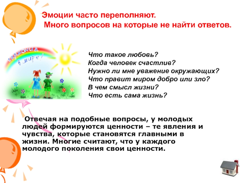 Слайд 5 Отвечая на подобные вопросы, у молодых людей формируются