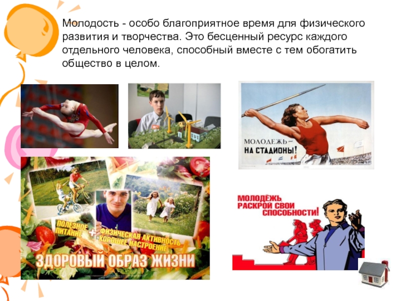 Слайд 12Молодость - особо благоприятное время для физического развития и творчества. Это