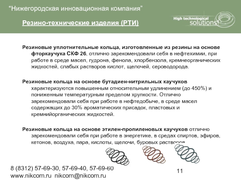 кольца, изготовленные из резины на основе фторкаучука СКФ 26, отлично зарекомендовали себя в нефтехимии, при работе в среде масел, гудрона, фенола, хлорбензола, кремнеорганических жидкостей, слабых растворов кислот, щелочей, сероводорода.
