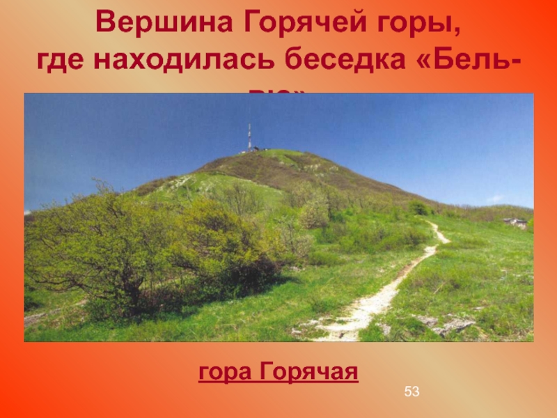 Слайд 53Вершина Горячей горы, где находилась беседка «Бель-вю»