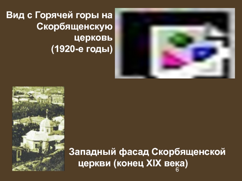 Слайд 6Вид с Горячей горы на Скорбященскую церковь (1920-е годы)