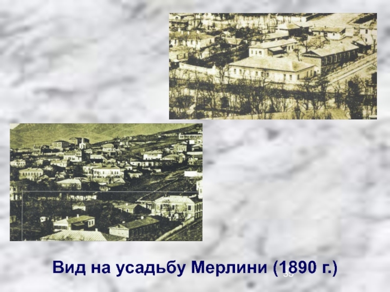 Слайд 35Вид на усадьбу Мерлини (1890 г.)