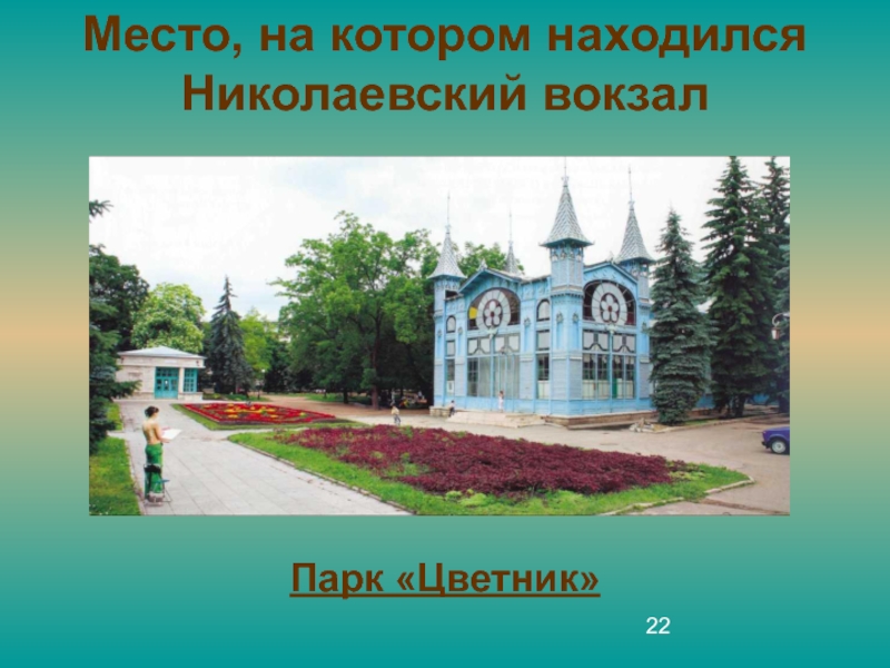 Слайд 23Вид Николаевского вокзала и Николаевского цветника (1880-е годы)