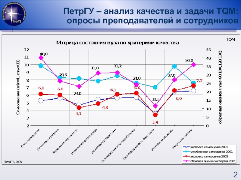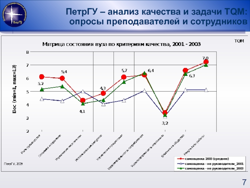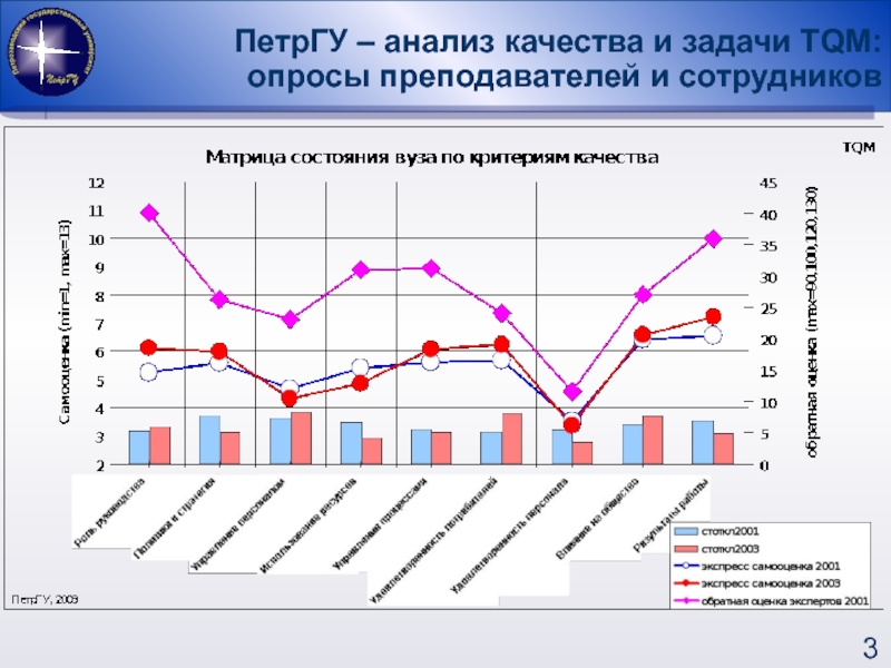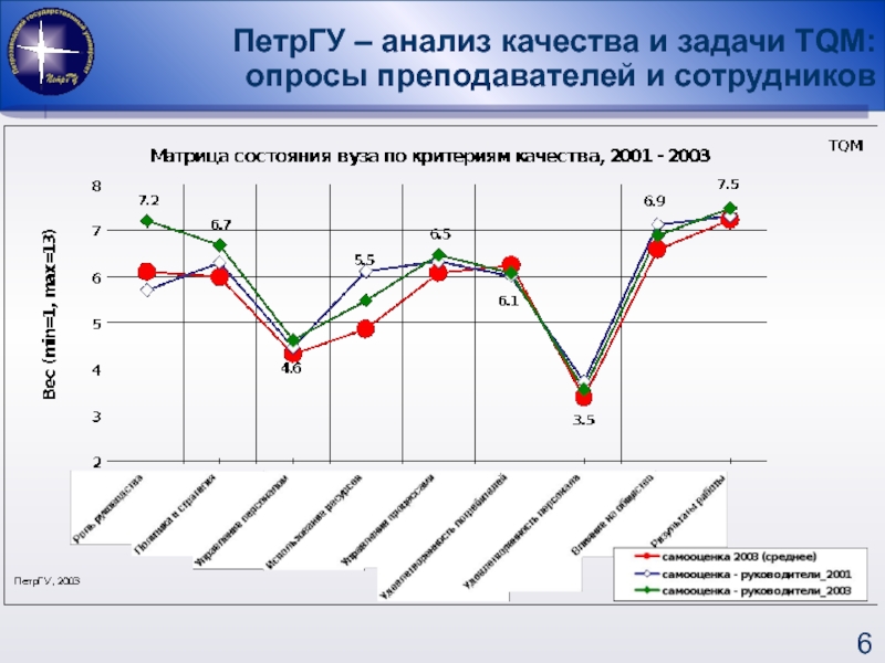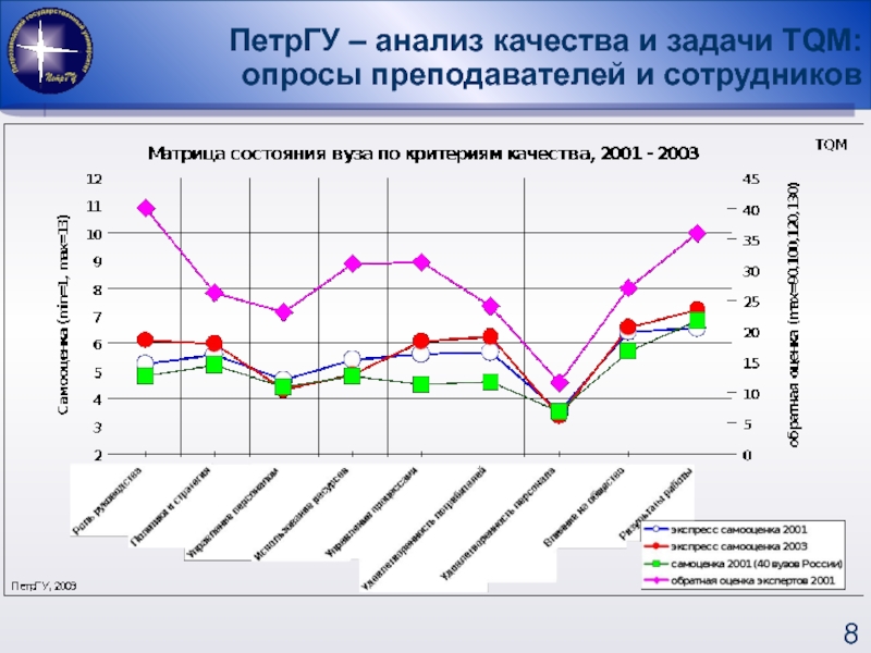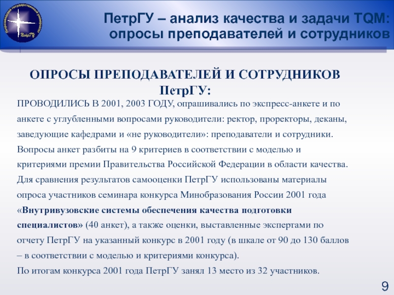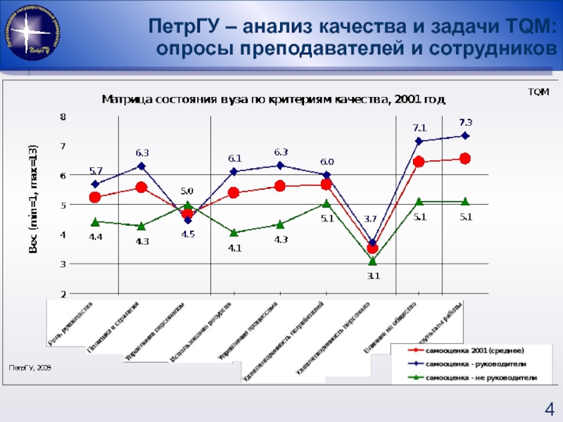ПРОВОДИЛИСЬ В 2001, 2003 ГОДУ, опрашивались по экспресс-анкете и по анкете с углубленными вопросами руководители: ректор, проректоры, деканы, заведующие кафедрами и «не руководители»: преподаватели и сотрудники.
