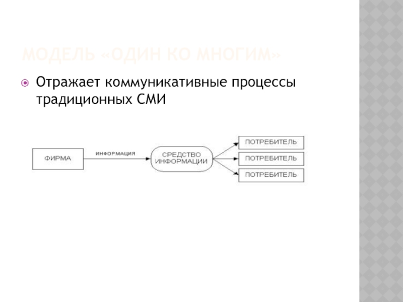 В основе данной коммуникационной модели лежит процесс «один ко многим», при