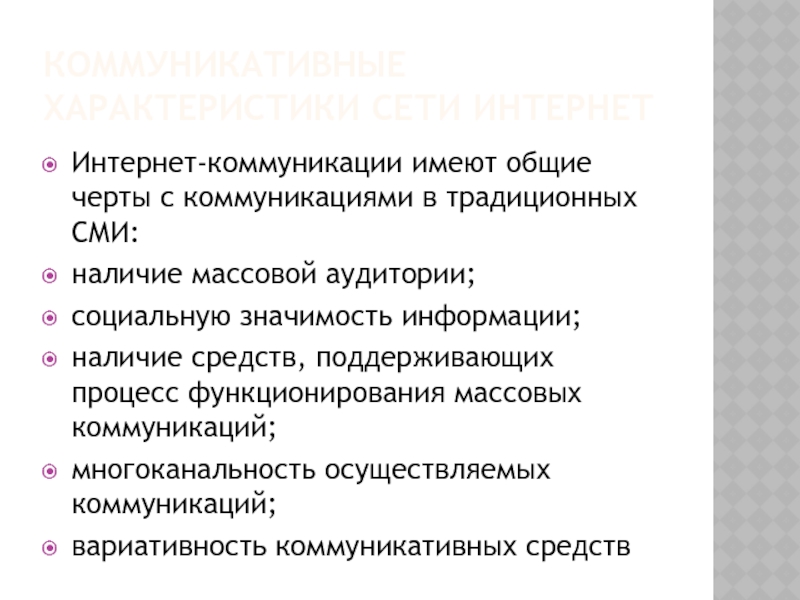 Слайд 4КОММУНИКАТИВНЫЕ ХАРАКТЕРИСТИКИ СЕТИ ИНТЕРНЕТ