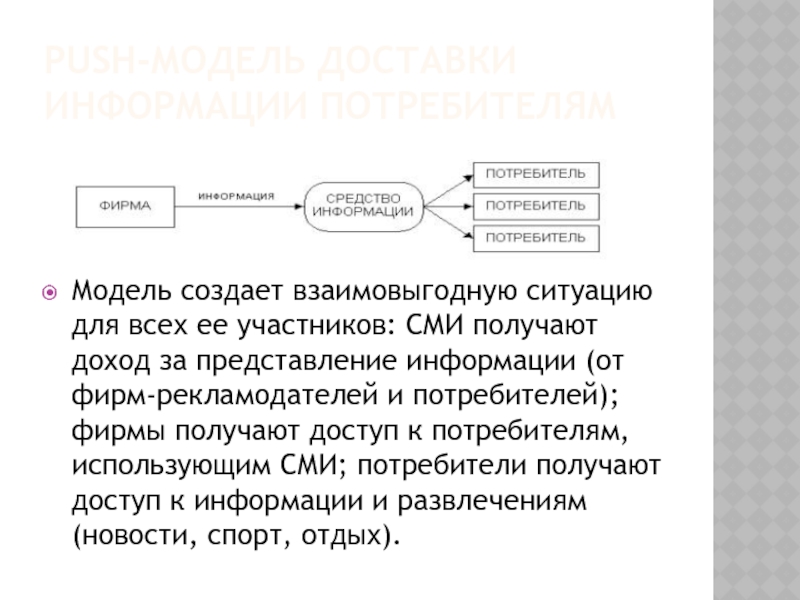 Традиционные средства массовой информации реализуют push-модель доставки информации потребителям, в которой