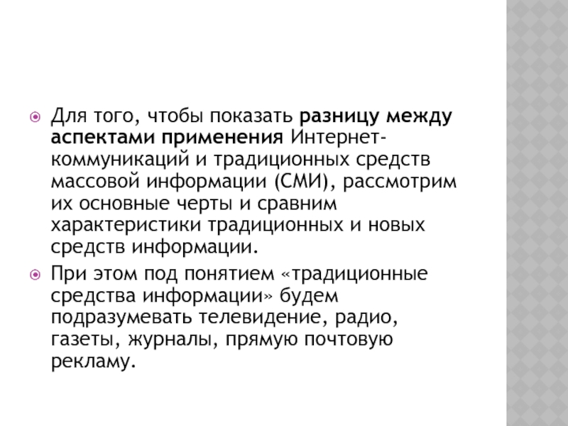 Для того, чтобы показать разницу между аспектами применения Интернет-коммуникаций и традиционных