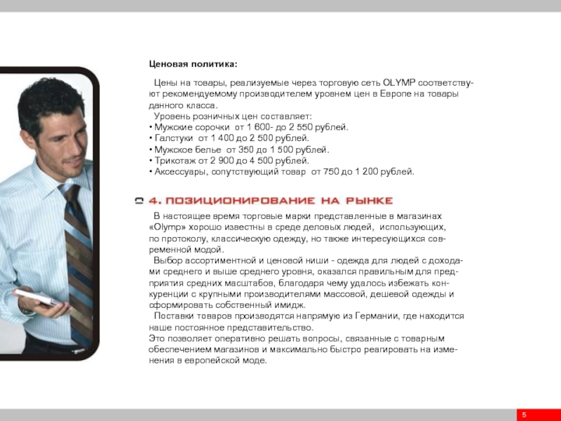 Основу товарного наполнения магазина «Olymp» составляют мужские