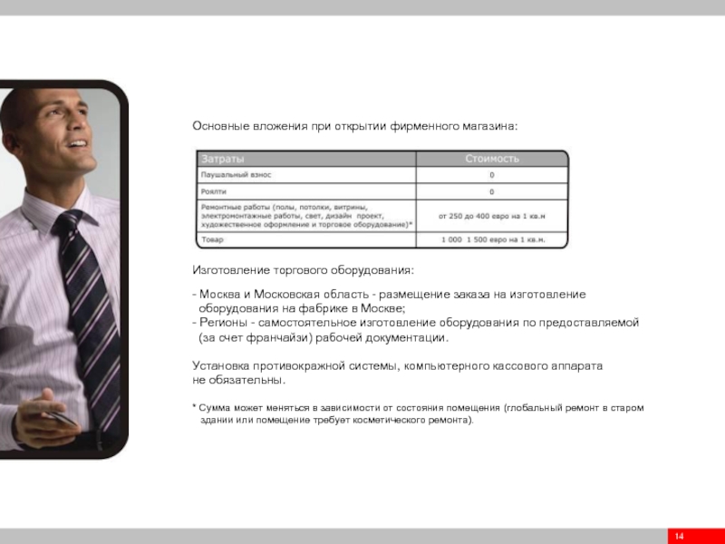 Сумма инвестиций, на открытие магазина OLYMP зависит от: