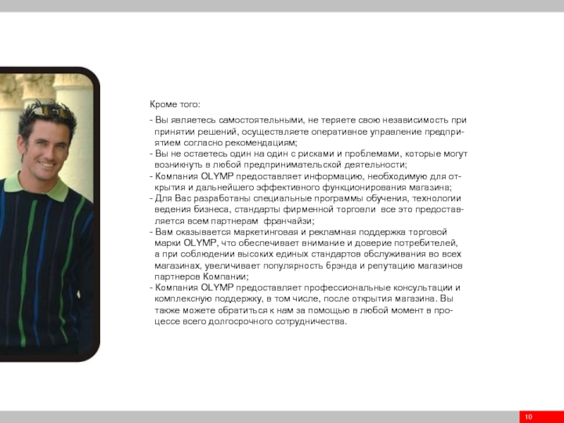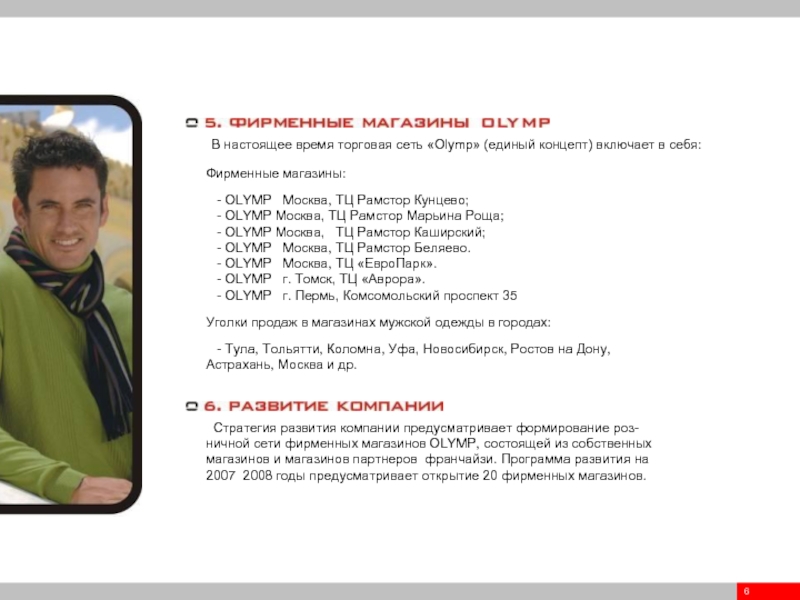 • Спектр услуг по организации фирменной торговли OLYMP, а именно: