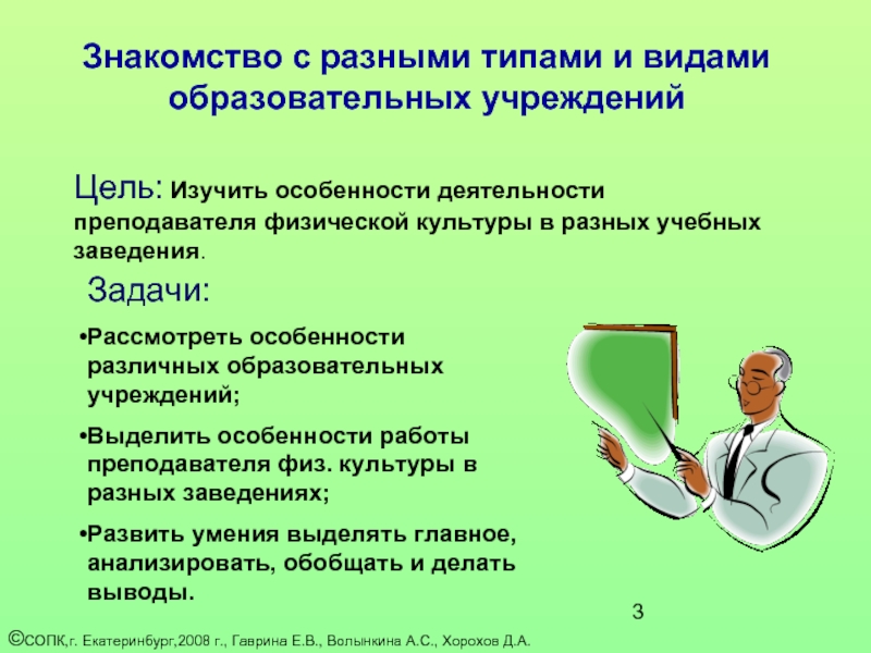 Выделить особенности работы преподавателя физ. культуры в разных заведениях;