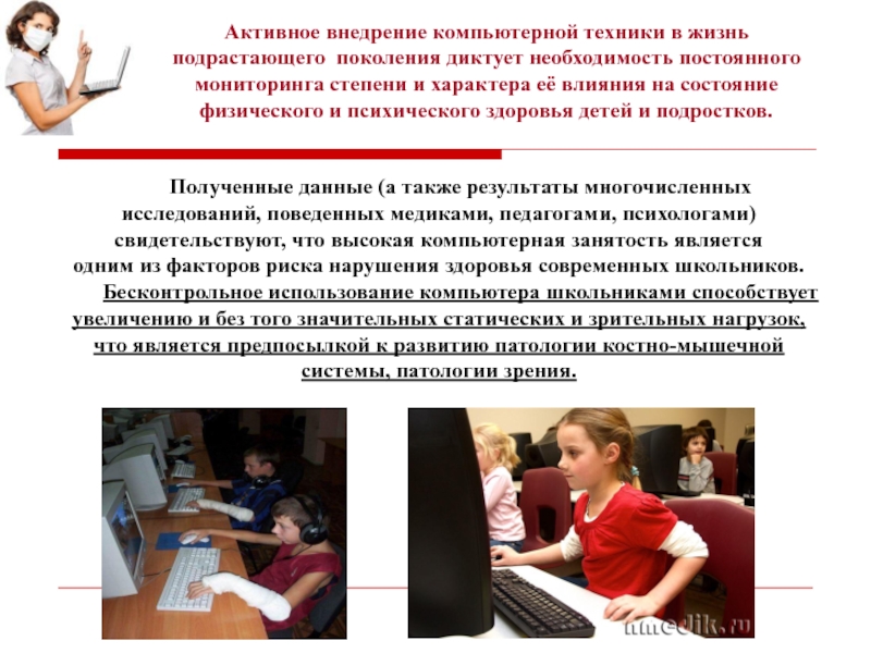 Активное внедрение компьютерной техники в жизнь подрастающего поколения диктует необходимость постоянного мониторинга степени и характера её влияния на состояние физического и психического здоровья детей и подростков.