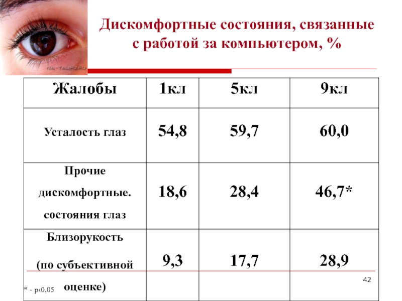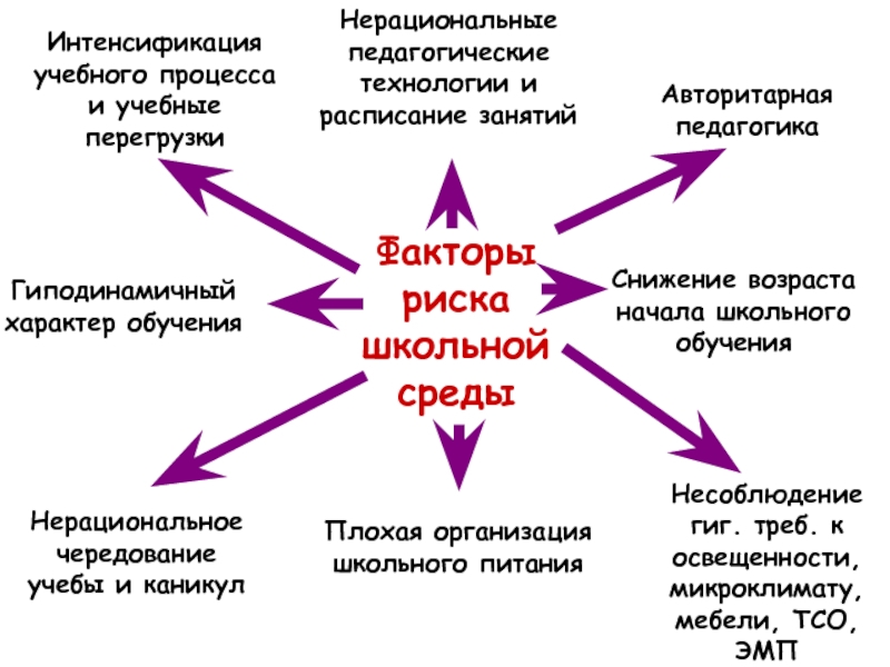 Несоблюдение гиг. треб. к освещенности, микроклимату, мебели, ТСО, ЭМП