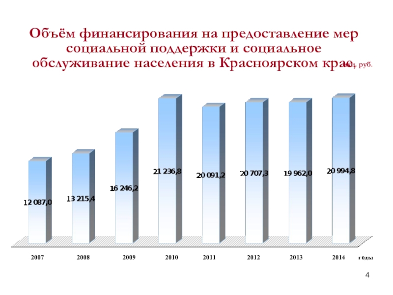 Объём финансирования на предоставление мер социальной поддержки и социальное обслуживание населения в Красноярском крае,