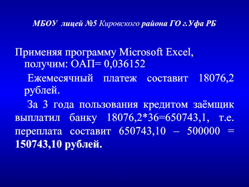 Слайд 18МБОУ лицей №5 Кировского района ГО г.Уфа РБ