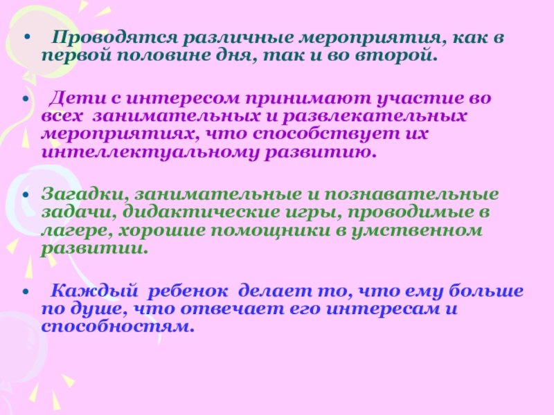 Загадки, занимательные и познавательные задачи, дидактические игры, проводимые в лагере, хорошие помощники в умственном развитии.