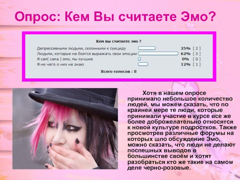 Слайд 41Опрос: Кем Вы считаете Эмо?