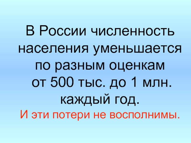 Слайд 5В России численность населения уменьшается по разным оценкам