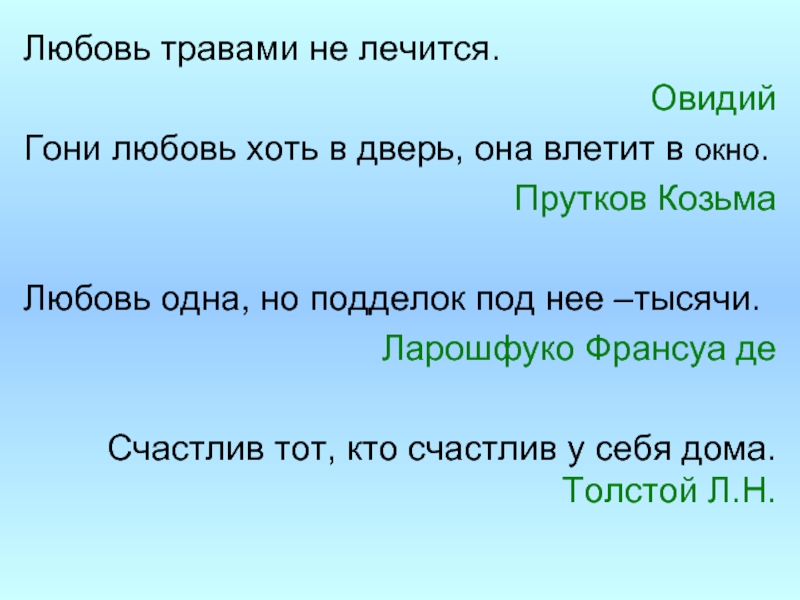 Счастлив тот, кто счастлив у себя дома. Толстой Л.Н.
