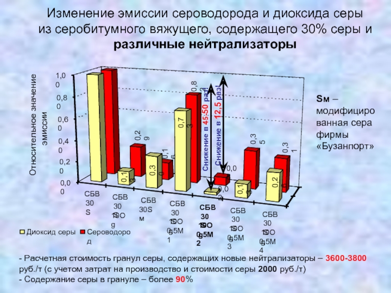 - Расчетная стоимость гранул серы, содержащих новые нейтрализаторы – 3600-3800 руб./т (с учетом затрат на производство и стоимости серы 2000 руб./т)