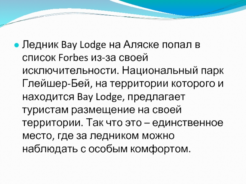 Слайд 5Ледник Bay Lodge на Аляске попал в список Forbes из-за своей