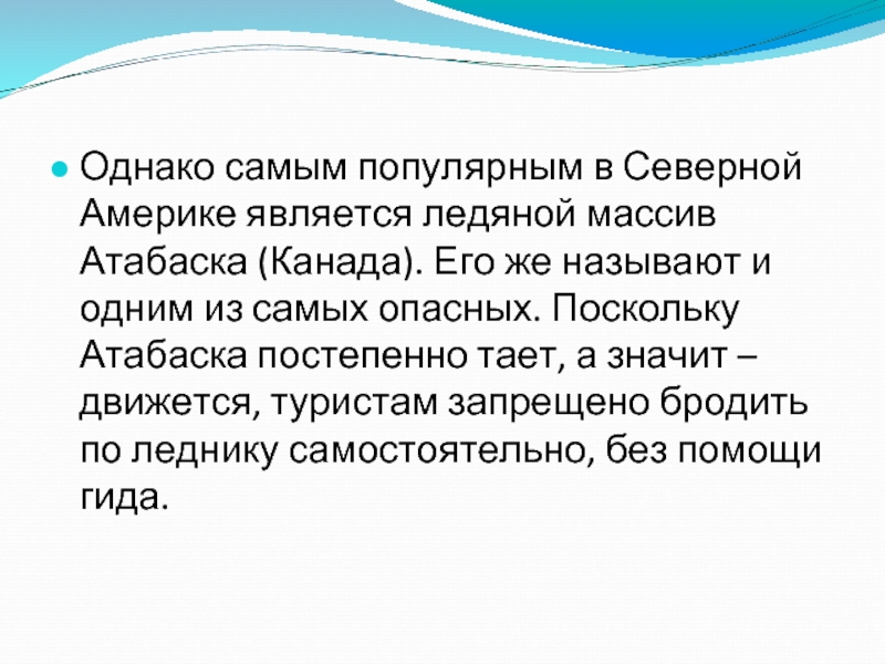 Слайд 7Однако самым популярным в Северной Америке является ледяной массив Атабаска (Канада).