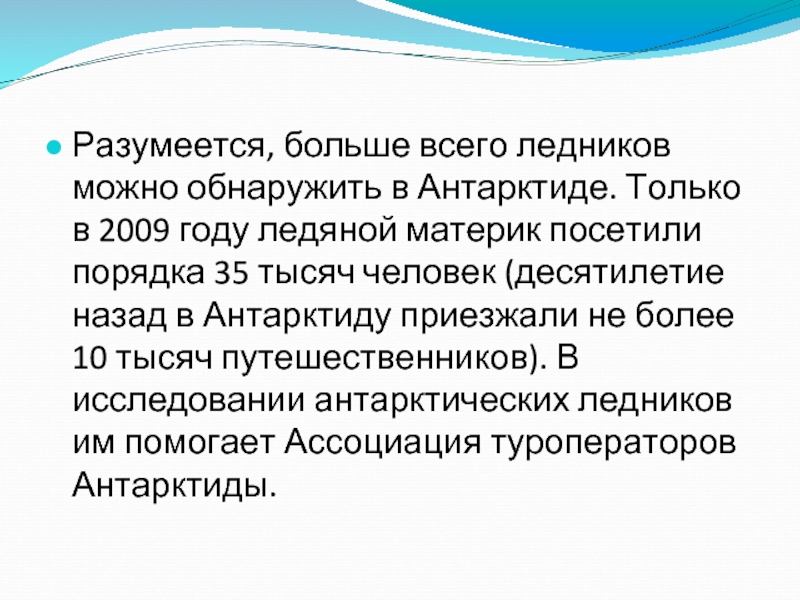 Слайд 11Разумеется, больше всего ледников можно обнаружить в Антарктиде. Только в 2009
