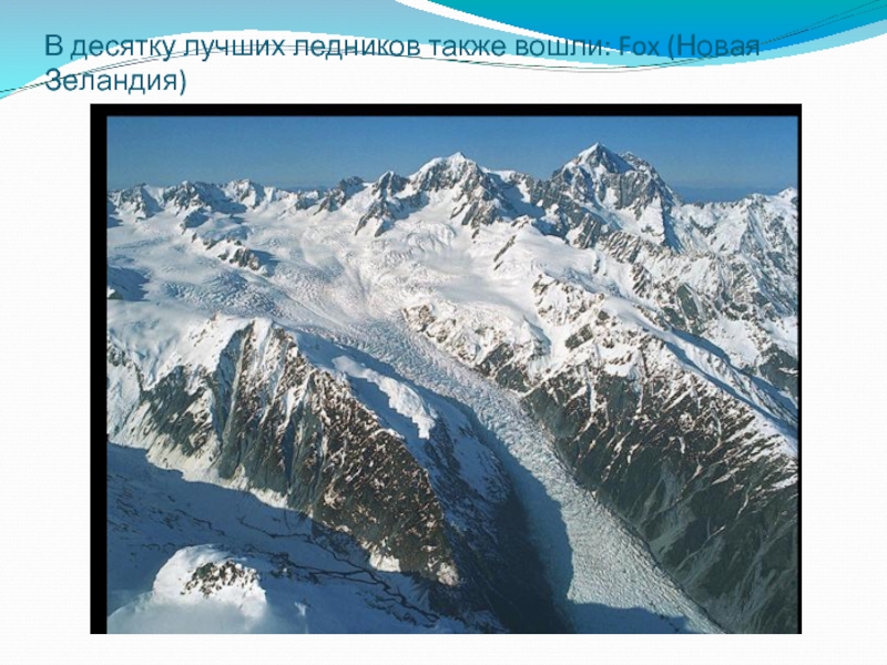 Слайд 12В десятку лучших ледников также вошли: Fox (Новая Зеландия)
