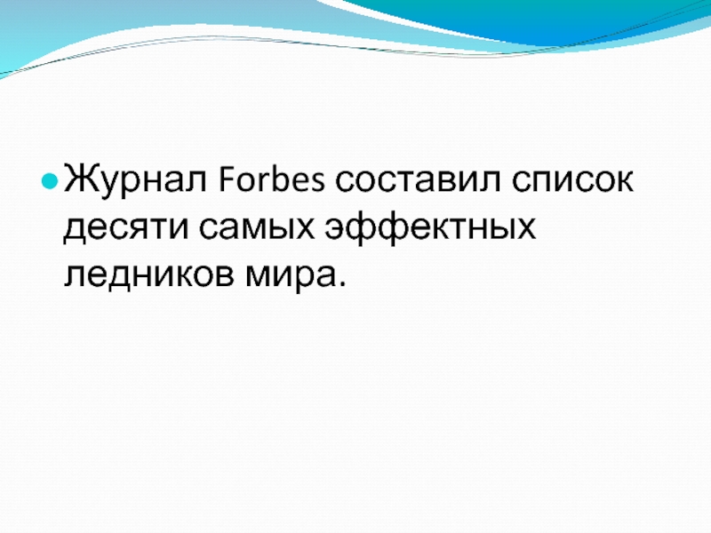 Слайд 2Журнал Forbes составил список десяти самых эффектных ледников мира.