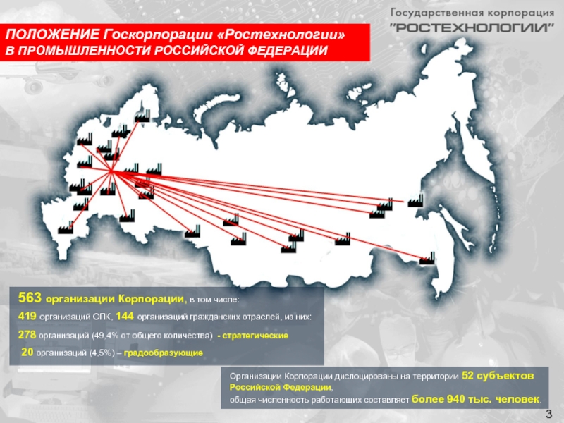 Организации Корпорации дислоцированы на территории 52 субъектов Российской Федерации,